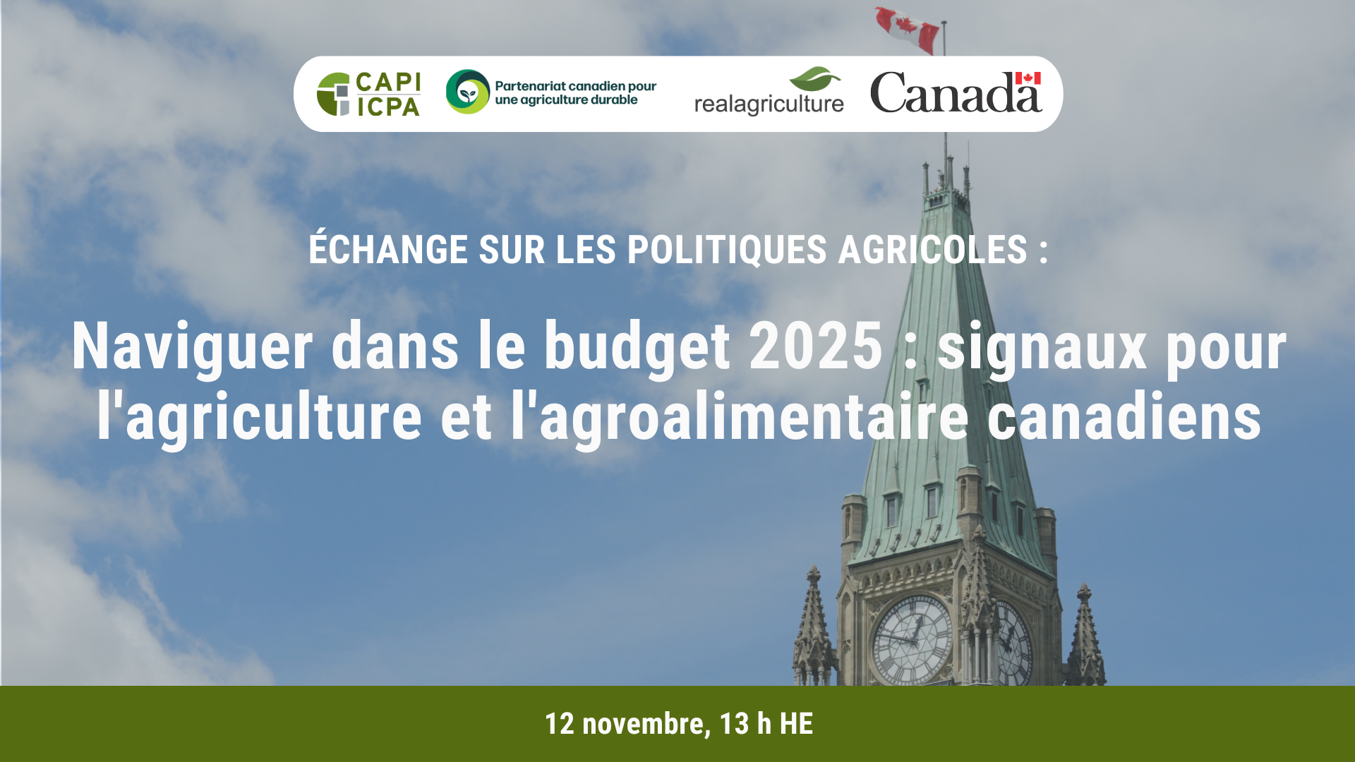 Le budget fédéral 2025 arrive à un moment charnière pour l’agriculture canadienne, marqué par l’incertitude économique, l’évolution des marchés mondiaux et les attentes croissantes envers un système agroalimentaire résilient et compétitif. Ce webinaire, présenté en partenariat avec RealAgriculture, analysera les principales mesures fiscales du budget, évaluera les priorités fédérales, examinera les lacunes qui subsistent dans les politiques et explorera les implications pour le secteur agricole.