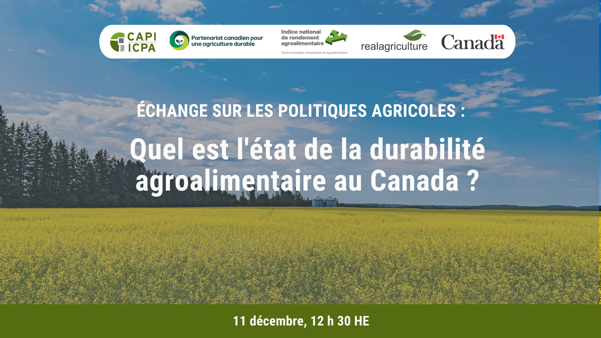 Ce webinaire, présenté en partenariat avec RealAgriculture, présentera la dernière mise à jour de l’indice national de performance agroalimentaire du centre d’analyse comparative en agroalimentaire et explorera comment cet outil peut renforcer la prise de décision fondée sur des données probantes dans l’ensemble du secteur.