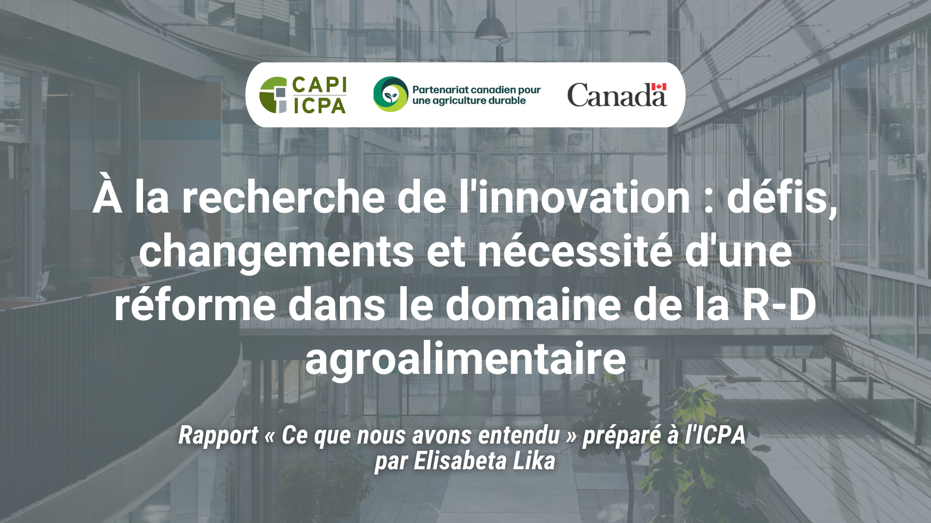 Ce rapport fait partie d’une initiative de l’ICPA qui explore l’avenir du système de R-D agricole du Canada, dans le but de favoriser un dialogue inclusif et fondé sur des données probantes au sujet des réformes potentielles. Ce rapport, ainsi que d’autres rapports, dialogues et communications, encouragent la réflexion sur le rôle que le système de R-D agricole doit jouer pour aider l’agriculture et l’agroalimentaire canadiens à réaliser leur plein potentiel.